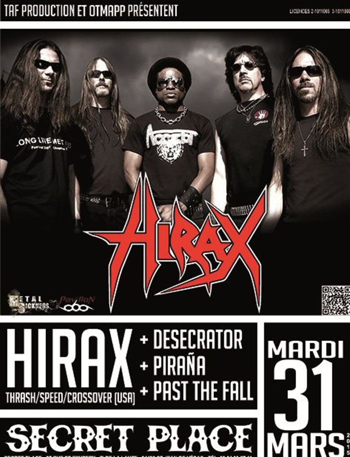 L’événement Hirax + Desecrator + Pirana + Past the fall de type Hard-rock Metal, organisé ici :