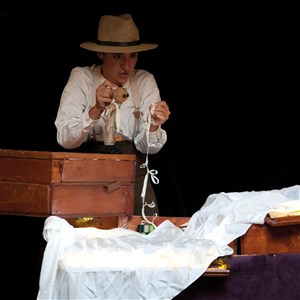 Dans une boîte à couture se raconte une histoire cousue de fil rouge, qui suit le fil de la pensée et qui se raconte au fil du temps, sur le fil du rasoir.