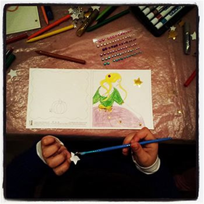 Entourés de Cendrillon, la Belle au bois dormant et d'autres personnages issus des contes de Charles Perrault, les enfants vont créer leur propre carte de voeux à partir d'illustrations qu'ils vont personnaliser avec différents matériaux.