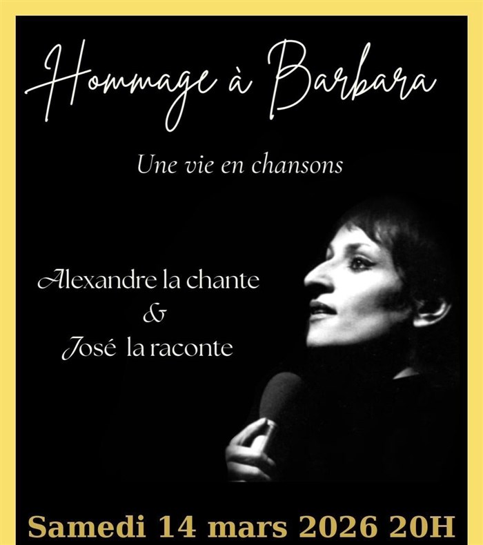 Découvre Hommage à Barbara, qui fait partie de notre sélection d’événements de type Spectacle musical et qui se tient ici : Café Théâtre du Têtard -