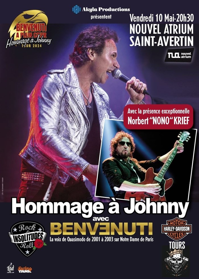 Pierre Benvenuti et son groupe Insolitudes accompagné exceptionnellement sur scène de Norbert "Nono" Norbert Krief seront au Nouvel Atrium de Saint Avertin/Tours le 10 Mai Prochain pour rendre hommage à Johnny Hallyday avec un concert de folie.