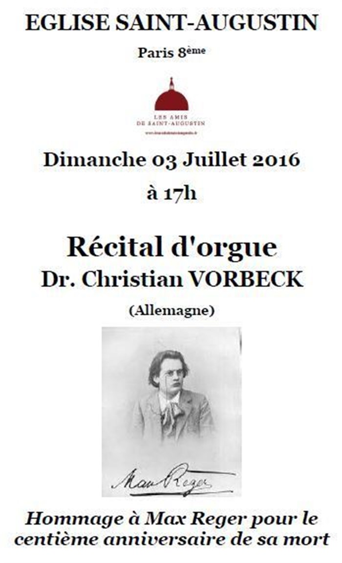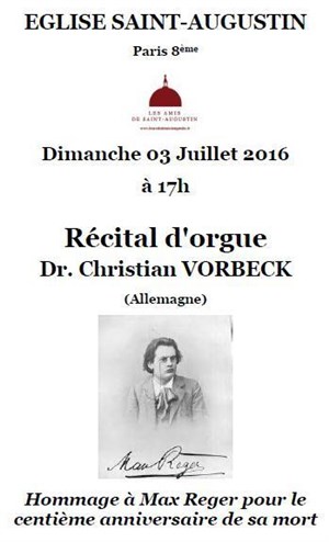 L’événement Hommage à Max Reger pour le centième anniversaire de sa mort de type Musique classique, organisé ici :