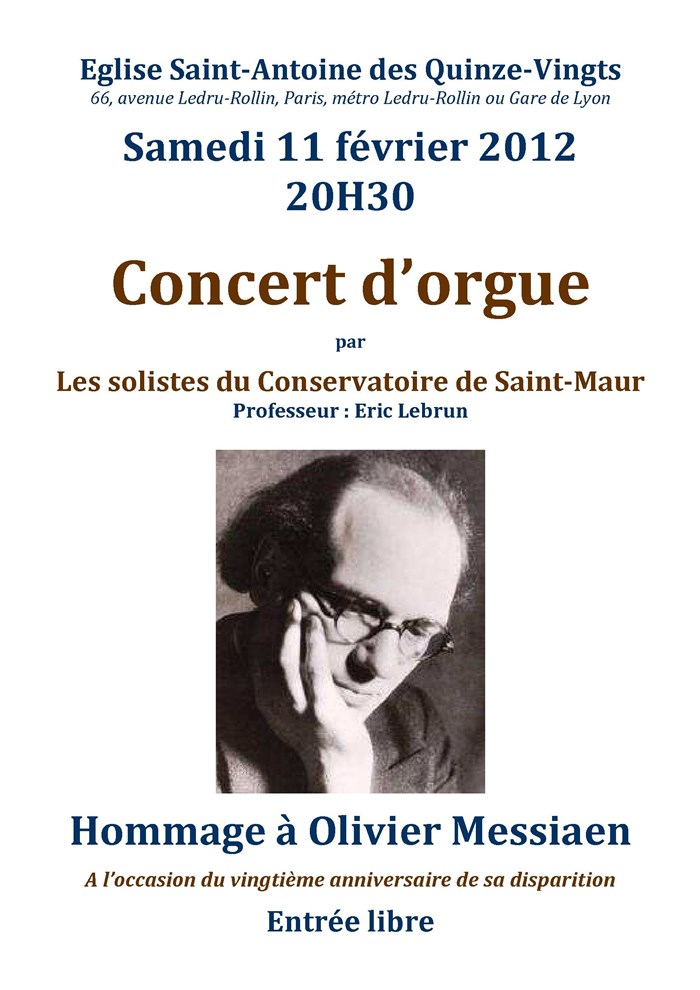 Concert spécial à l'occasion du 20ème anniversaire de la disparition d'Olivier Messiaen.
