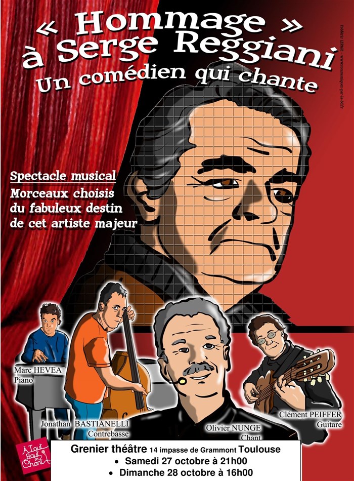 Une voix, un piano, un accordéon, une guitare et une contrebasse qui s'accordent dans une mise en spectacle vivant insolite pour partager des morceaux choisis du fabuleux destin de cet artiste majeur qu'est Serge Reggiani.