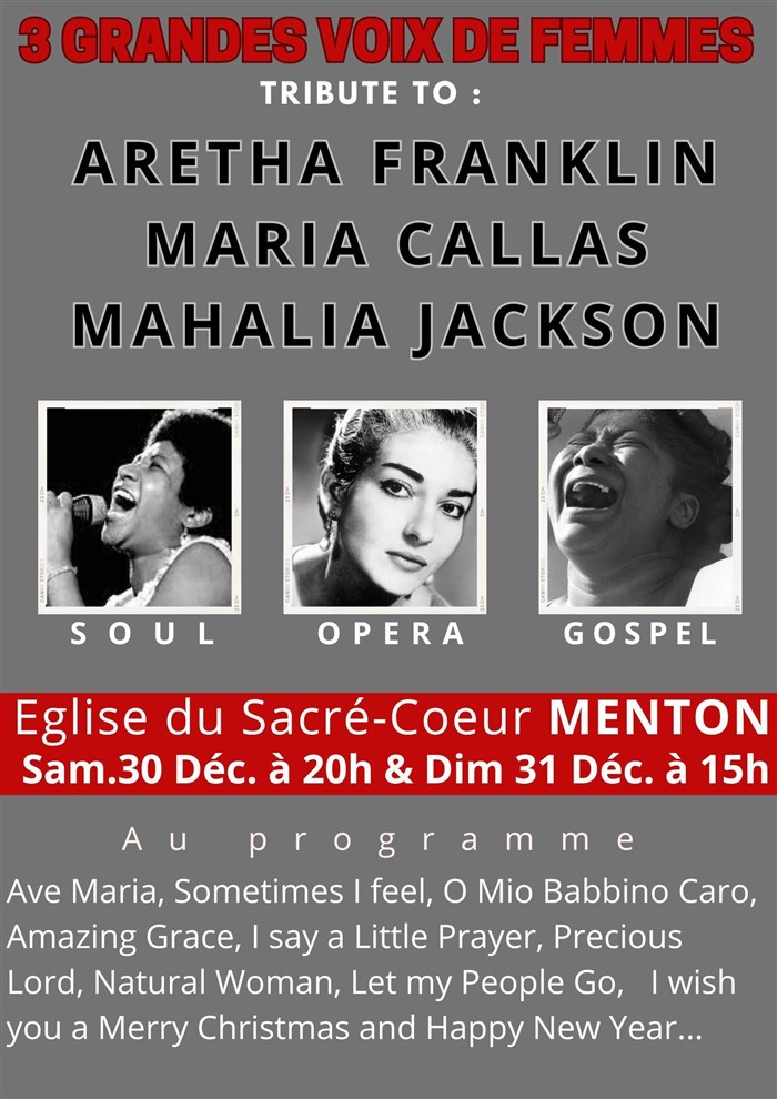 Avis et critiques : Hommage aux 3 grandes voix de femmes : Aretha Franklin / Maria Callas / Mahalia Jackson