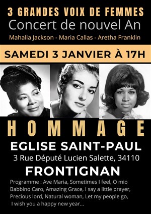 Hommage aux 3 grandes Voix de Femmes : Mahalia Jackson, Maria Callas et Aretha Franklin