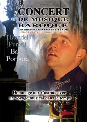 Mathieu Salama contre-ténor, sopraniste met sa voix au service d'un programme en hommage aux castrats en chantant des airs pour Farinelli et autres grands castrats, de l'Opéra au Salon, du baroque au romantisme, airs de Vivaldi, Haendel, Gluck, Purcell, Bach, Porpora...