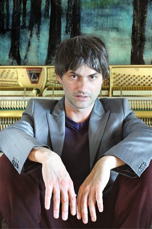 En duo piano-batterie, Hugues Pluviôse présente son nouveau répertoire : des chansons à consonance electro-pop.
