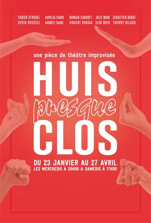 À partir du lieu et du contexte que vous leur proposez, les quatre personnages, enfermés dans un quasi huis clos, voient à force de découvertes, de révélations et de déclarations, leurs masques sociaux s'effriter puis tomber pour le plus grand plaisir des spectateurs. Le spectacle Huis presque Clos tire son épingle du jeu en créant un concept nouveau liant les conventions théâtrales d'unité de temps, de lieu, de personnages et d'espace à l'improvisation pure sans texte prédéfini.