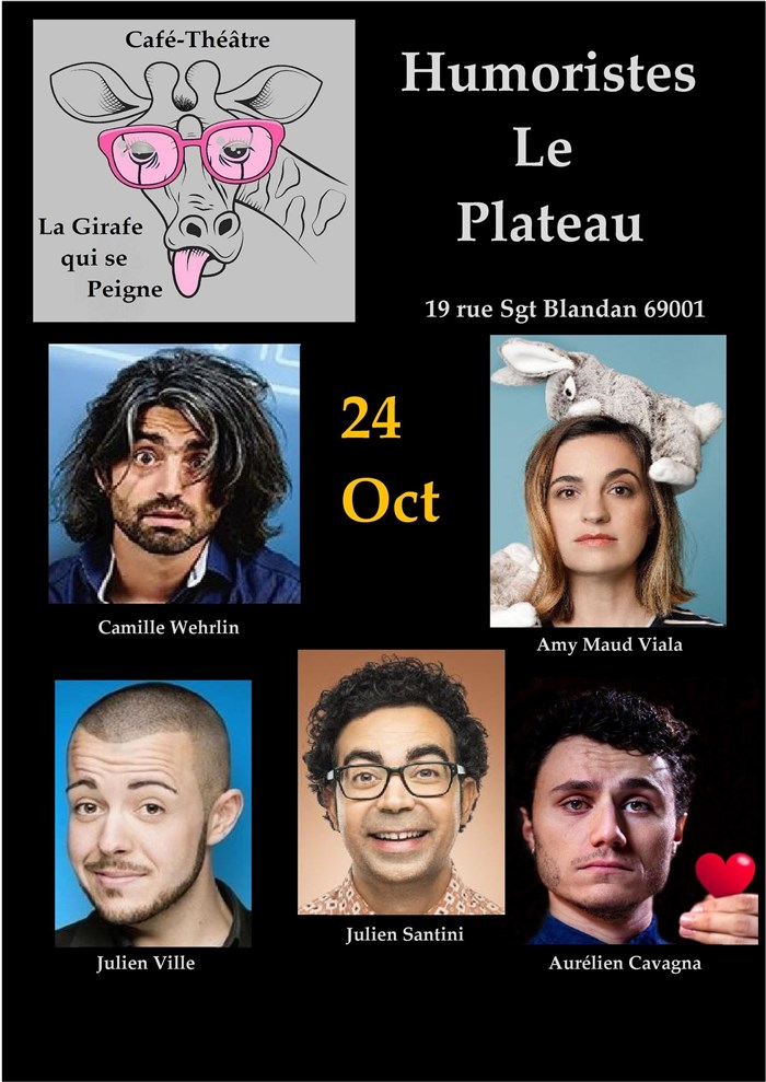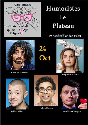 5 humoristes dans leurs meilleurs sketches à la Girafe qui se Peigne.