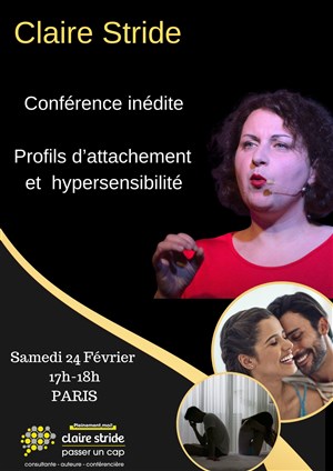 Claire Stride est consultante auteure, conférencière, spécialiste en neurosciences et en accompagnement des personnes neuro-atypiques. Alors que les profils d'attachement font le buzz sur internet, notamment le profil évitant, qu'en est-il pour les personnes hypersensibles ? Dans cette conférence totalement inédite, Claire Stride vous donnera toutes les clés pour comprendre les notions de profils sécures et insécures (évitant, anxieux, chaotique) et comment cela se vit quand on est hypersensible.