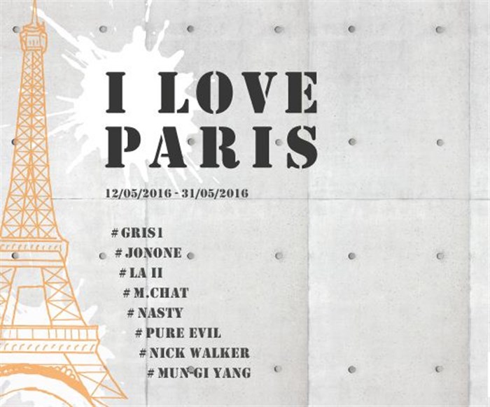 " I Love Paris " est une exposition consacrée à des artistes qui rendent hommage à cette ville tellement artistique. Chaque artiste participant reçoit la ville de Paris comme une source d'énergie artistique : JonOne est l'un des premiers street-artistes à être entré dans les murs institutionnels parisiens. En 2015, il s'inspire du fameux chef-oeuvre d'Eugène Delacroix " La liberté guidant le peuple " avec sa propre création et ses énergies colorées pour passer le seuil de l'Assemblée nationale.