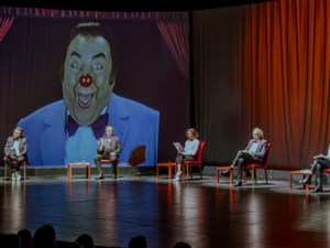 On dirait qu'il sort d'un film de Fellini. Avec son costume bleu ciel, son ventre rond, sa tête en forme de poire, il est un des grands clowns du XXe siècle.