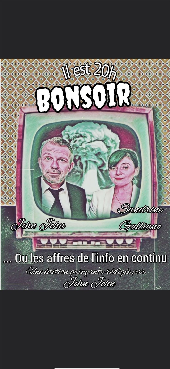 Une Comédie satyrique du journal TV ! On a adoré...et on a beaucoup rit . Un texte plein d'intérêts et de significations.... ( On ne verra plus jamais le journal et les infos du même oeil ) Deux Comédiens en bonne harmonie, pleins d'énergie à revendre ! Un vrai plaisir....