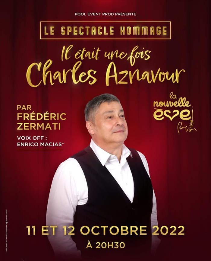 Dans l'écrin de La Nouvelle ÈVE, un spectacle exceptionnel dans les pas de Charles Aznavour avec une formidable interprétation de Frédéric Zermati entouré de ses musiciens. Dans la plus grande tradition du cabaret ! BRAVO