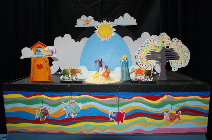Il commence par la couleur du ciel, du soleil, de la nuit, de la lune, toutes les couleurs de la mer. Il y installe son troupeau de moutons. Mais hélas, quelques-uns ne trouvent pas le pays très beau. Finalement, tout rentre dans l'ordre et tout le monde fait la fête.