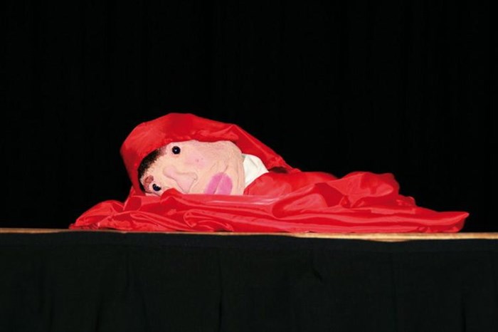 Prise de panique, elle veut tout arrêter. Pourtant, la représentation doit avoir lieu ! Elle devra improviser avec le contenu de sa malle ! Mais la marionnette qu'elle a amenée est un garçon ! Acceptera-t-il de jouer le rôle du petit chaperon rouge ? Et le loup ? Et la Grand-Mère ? Comment la marionnettiste se sortira-t-elle de cette impasse ? Adaptation pour la scène et la marionnette à taille humaine du conte populaire du petit chaperon rouge à travers le croisement de l'écriture dramatique et celle du conte.