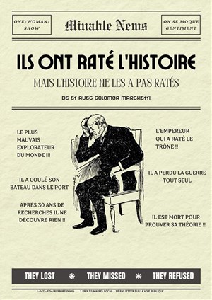 Découvre Ils ont raté l'Histoire, qui fait partie de notre sélection d’événements de type Seul(e) en Scène et qui se tient ici : Théo Théâtre -