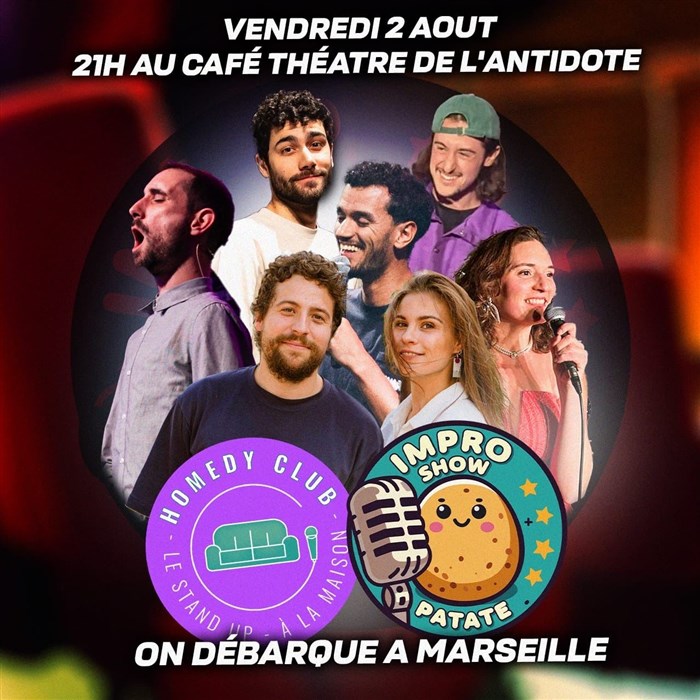 Le Homedy Club et l'Impro Show Patate s'allient pour vous offrir une soirée unique en son genre au Café Théâtre de l'Antidote à Marseille ! C'est un gala pour deux spectacles, une place pour eux et une place pour le nous !