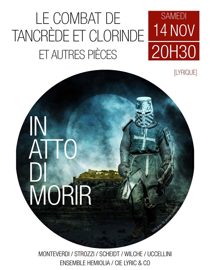 In atto di morir — " entrant en agonie " — est un montage, autour du Combat de Tancrède et Clorinde de Monteverdi. Version scénique en italien, surtitrée en français.