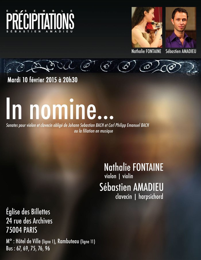 Avec "In nomine...", Précipitations propose un programme de sonates pour violon et clavecin obligé de Johann Sebastian Bach et son fils Carl Philipp Emanuel Bach.