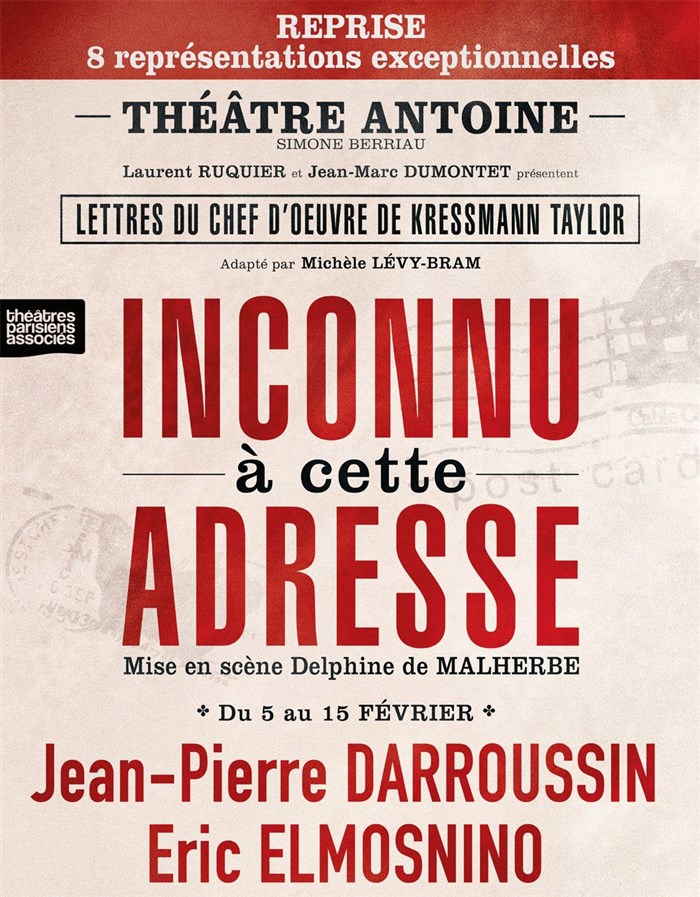 Tu veux savoir ce qu’ont pensé les spectateurs et la presse de cet événement : Inconnu à cette adresse | avec Jean-Pierre Darroussin et Eric Elmosnino | Les dernières - Théâtre Antoine ? Découvre leurs avis éclairés et prépare-toi à vivre un moment d’exception à ton tour en réservant tes places !