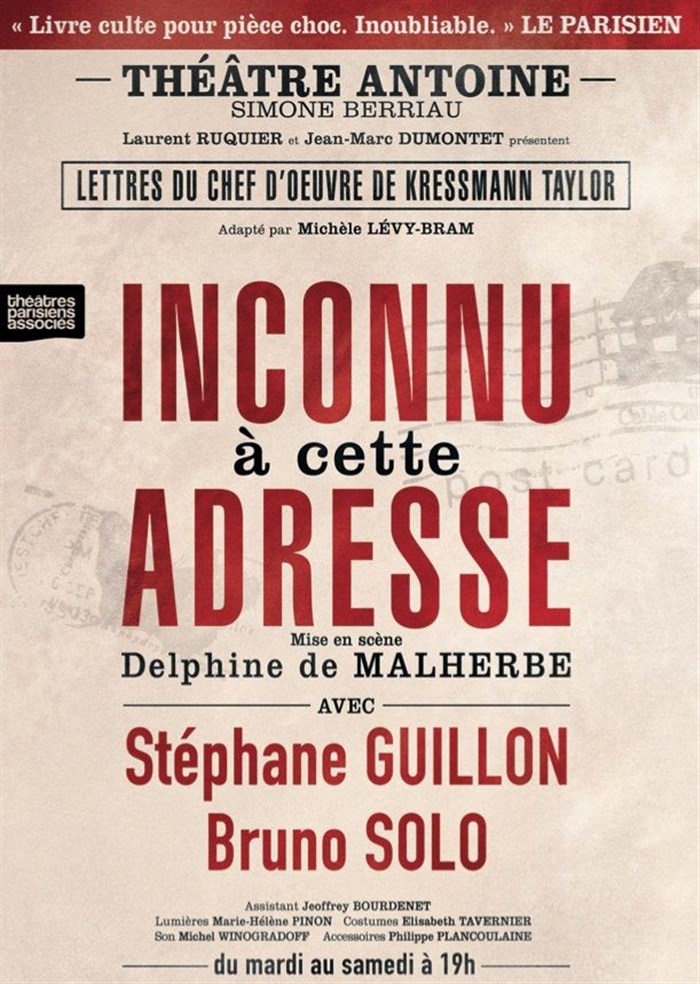 Tu veux savoir ce qu’ont pensé les spectateurs et la presse de cet événement : Inconnu à cette adresse | avec Stéphane Guillon et Bruno Solo - Théâtre Antoine ? Découvre leurs avis éclairés et prépare-toi à vivre un moment d’exception à ton tour en réservant tes places !