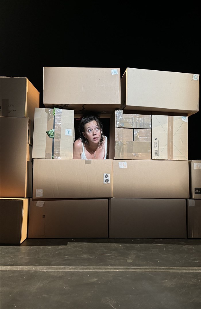 Des cartons qui s'empilent et se renversent, un secret de famille qui pèse : itinéraire, face au tabou, d'une résilience, entre humour et gravité.