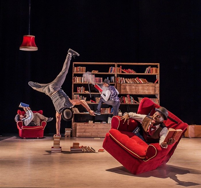 Tablettes, liseuses et autres écrans numériques n'ont qu'à bien se tenir. Les cinq danseurs de la compagnie Pyramid déboulent avec l'intention malicieuse de nous faire la lecture... Quand la bibliothèque devient leur terrain de jeu, les fauteuils, si cosy d'habitude, accueillent gags et acrobaties en tous genres et nos bons vieux livres s'en trouvent tout retournés.