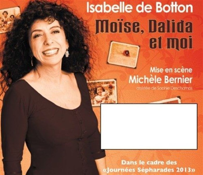 L’événement Isabelle de Botton dans Moïse, Dalida et Moi | mis en scène par Michèle Bernier de type One Woman Show, organisé ici :