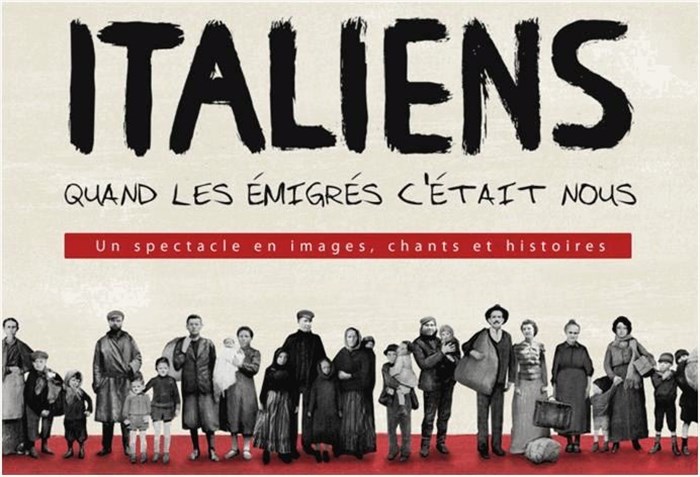 Ce spectacle évoque les 150 ans de l'émigration italienne, à travers des récits (en italien, puis traduits en français) et des chants italiens (30 chanteurs et musiciens)