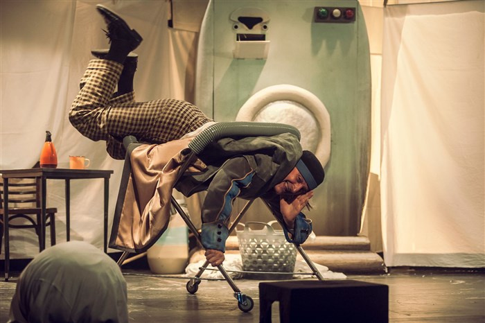 Au dernier sous-sol du Italino Grand Hôtel, il y a la laverie. Là-bas, un personnage solitaire lave, repasse et parfume les draps. Il vit et rêve parmi eux et il cache la solitude tout en parlant avec les machines et en jouant avec sa propre ombre.