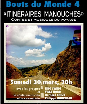 Bernard Cheze, conteur musicien qui s'est passionné pour ce travail de recherches, de rencontres, réalise ici une création unique pour l'occasion, en compagnie de musiciens hors-norme, Tino swing (quatre musiciens voyageurs, dignes héritiers de Django Reinhardt), Villa Hobo (deux guitaristes à l'énergie contagieuse) et Philippe Dourneau (clarinettiste, fagottiste ,flûtiste, manouche dans l'âme).