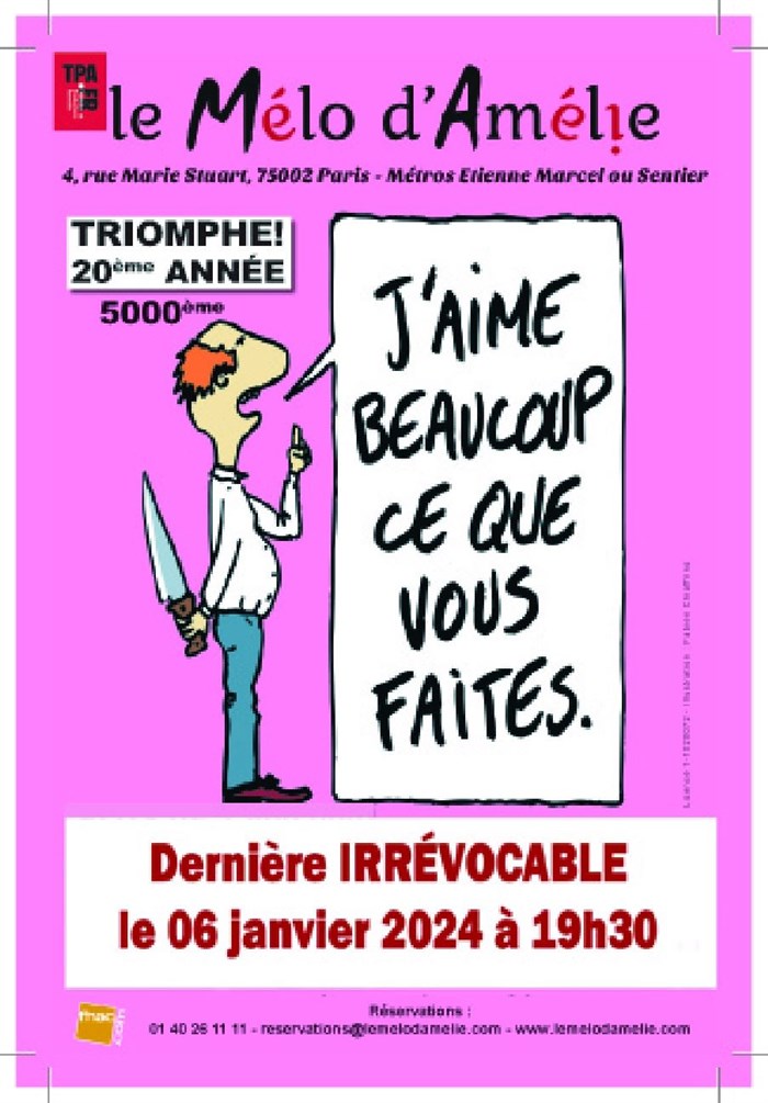 Tu veux savoir ce qu’ont pensé les spectateurs et la presse de cet événement : J'aime beaucoup ce que vous faites - Théâtre Le Mélo D'Amélie ? Découvre leurs avis éclairés et prépare-toi à vivre un moment d’exception à ton tour en réservant tes places !