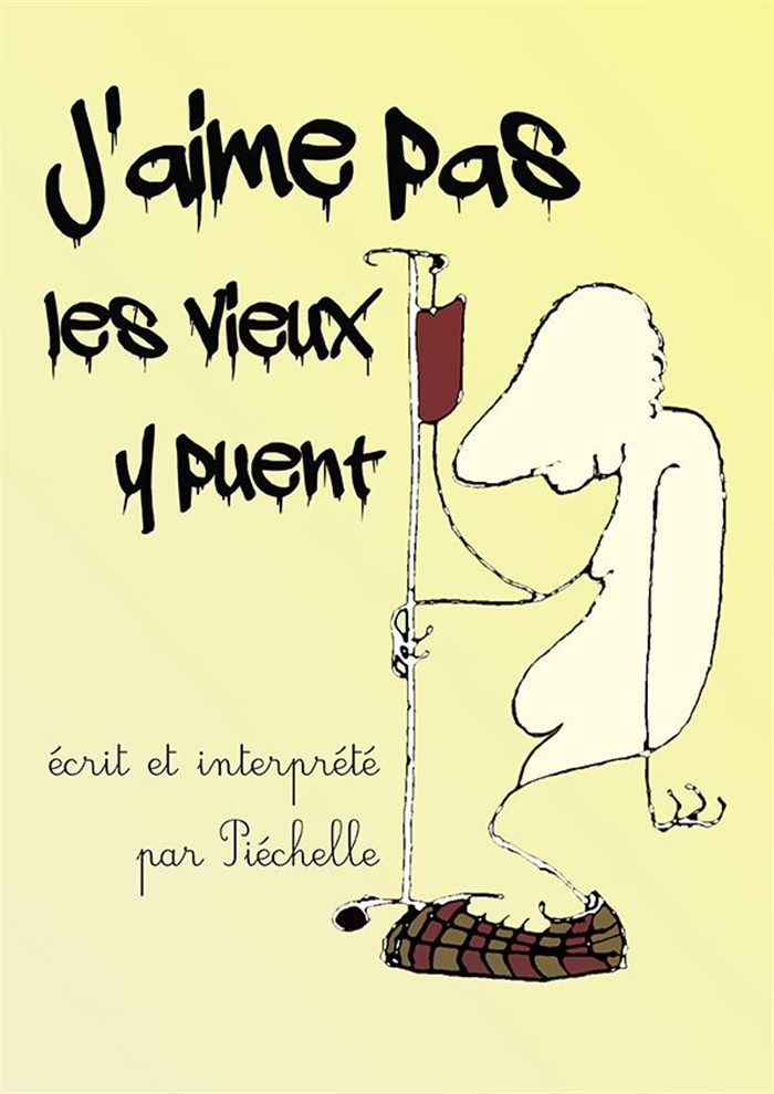 Parce que pour l'instant, il n'aime pas les vieux, y puent. En humour (grinçant) et en musique, Piéchelle fait la nique à sa peur de vieillir. Bref, un spectacle qui ne nous rajeunit pas...