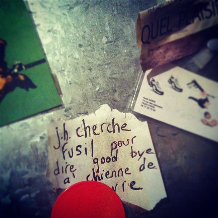 " Eh vous, c'est vous l'annonce ? [...] ''J.h. Cherche fusil pour mettre un terme à ses envies et dire Good bye à chienne de vie''. C'est bien vous ça ? {...] Je peux vous aider... "