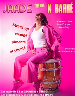 Si vous aimez l'humour, la musique et les Antilles, ne manquez pas le spectacle de Jaade, qui fait son K Barré au Théâtre Pixel. Jaade est une artiste complète, qui chante, danse et fait rire avec son talent et sa générosité. Elle nous raconte son parcours, ses origines, ses coups de coeur et ses coups de gueule, avec un regard décalé et engagé. Elle nous fait aussi découvrir des rythmes caribéens, en revisitant des chansons actuelles avec des paroles hilarantes. Accompagnée d'excellents musiciens, elle nous embarque dans son univers pétillant et coloré.. Ce spectacle est un vrai moment de bonheur, à partager sans modération !