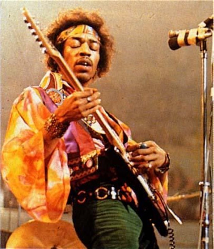 James Marshall Hendrix (1942-1970), connu sous le nom de Jimi Hendrix, guitariste, auteur-compositeur et chanteur américain.