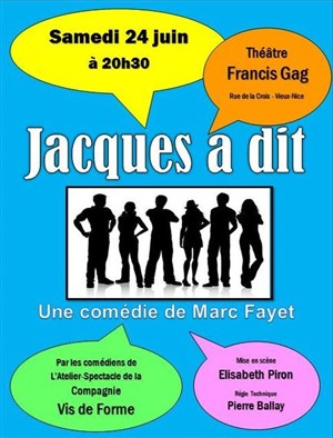 "Jacques a dit" comédie caustique de Marc Fayet, présentée par les comédiens de l'atelier spectacle de la compagnie Vis de Forme