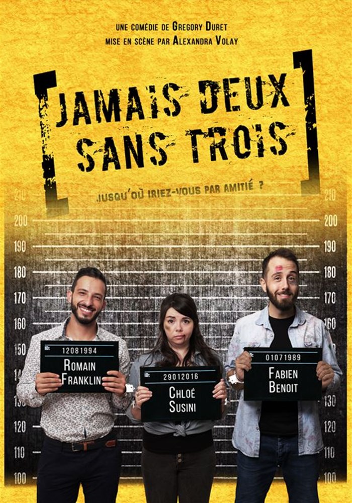 Comme le nom de la pièce, je suis allée la voir 3 fois car jamais 2 sans 3! Et je ne m'en lasse pas tellement cette pièce est drôle et émouvante. 3 acteurs hilarants et attachants on repart le coeur léger.