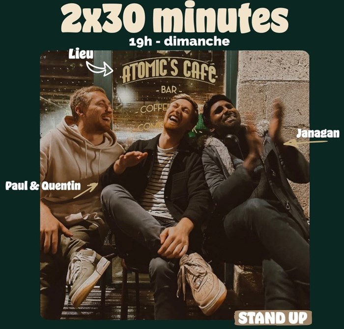 Si vous voulez rire ce dimanche en plein coeur de Nantes, Janagan, Paul et Quentin font 30 min de leurs blagues à l'Atomic's Café !