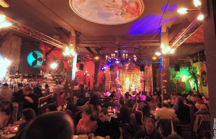 Brunch avec décor inattendu, tentures, miroirs baroques et luminaires insolites, véritables personnages de ce lieu multiple.