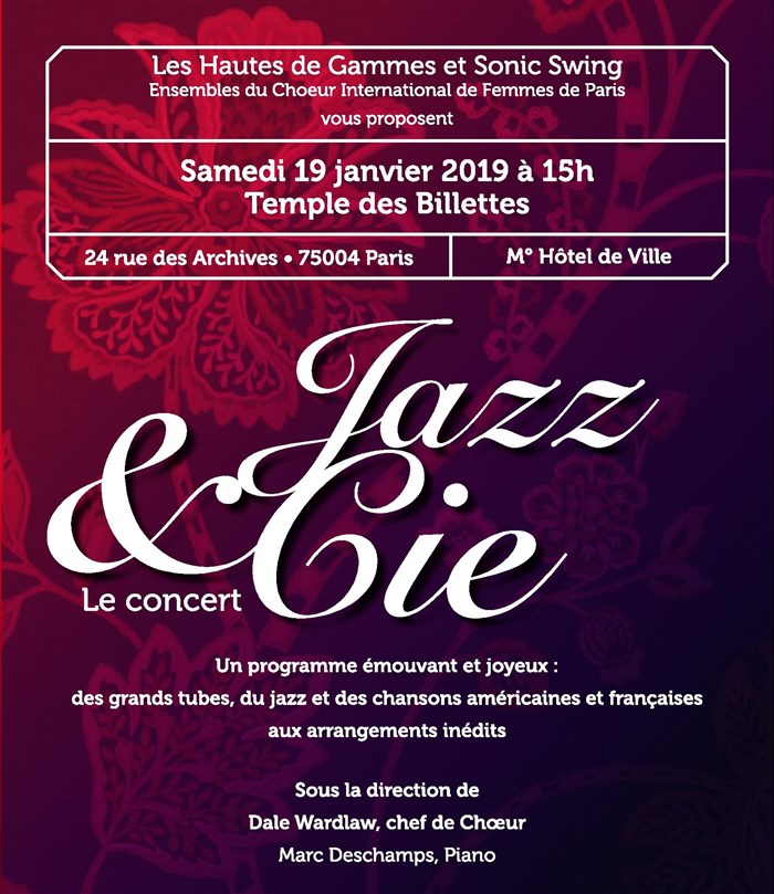L'association Choeur International de Femmes de Paris continue sa série de concerts cette année au centre de la capitale avec " Jazz & Cie " !