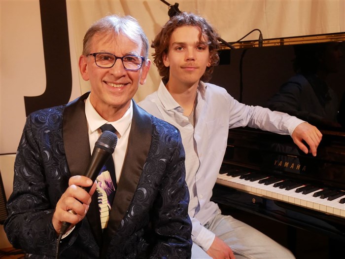 Le journaliste de TSF Jazz rend un vibrant hommage au genre. « It’s wonderful !, C’est merveilleux ! », commence-t-il, micro à la main, en cravate et veste à paillettes, au coté de son pianiste.