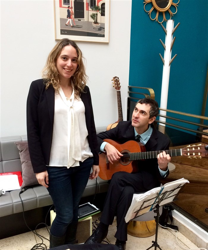 Welcome to Paris : the city of light, love, and music ! A typical french jazz concert by two European artists, some French, Jazz English and Spanish classics in a local café.