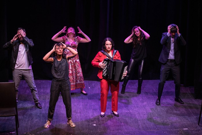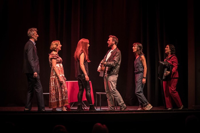 3 couples sont mis en scène et interprétés par 6 chanteurs-musiciens.