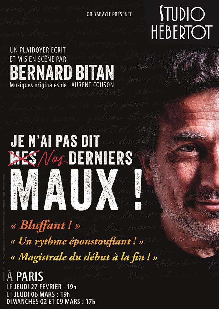 Bernard Bitan met des mots sur les maux du peuple juif. Un plaidoyer vibrant, drôle, profond et sans concession.