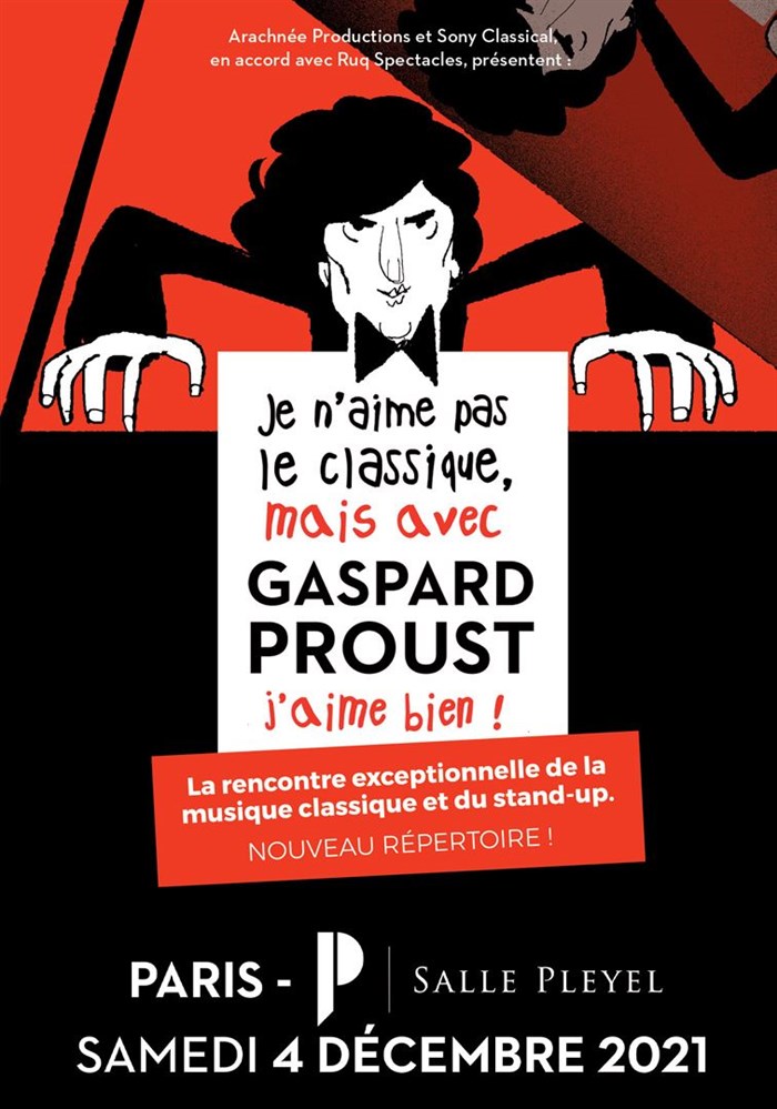 À travers ce spectacle, on découvre Gaspard Proust fin mélomane. Il s'est pris au jeu du projet, a conçu lui-même une sélection musicale, et nous fait déguster les plus belles oeuvres du répertoire à travers le prisme de son humour unique et irrésistible.