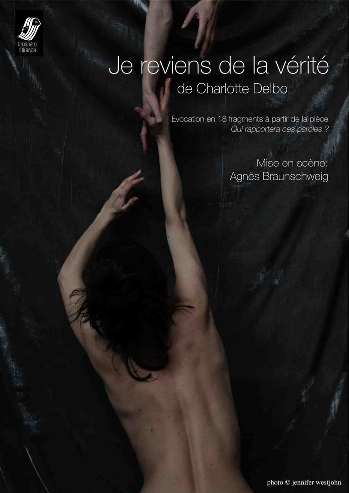 Dans le cadre des Célébrations Nationales 2013 qui commémorent le centenaire de la femme de lettres et résistante Charlotte Delbo (1913-1985), la pièce Je reviens de la vérité(adaptation pour 3 comédiennes de la pièce 'Qui rapportera ces paroles?') créée en 2011, jouée depuis à Paris et en province, est reprise pour cinq représentations exceptionnelles au Théâtre des Loges, avant de repartir en tournée en France et à l'étranger.