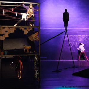 Notre maîtresse de cérémonie est funambule, fantôme d'Olympe de Gouges poursuivant son combat pour le droit des femmes. Depuis son fil d'équilibriste, elle marche, saute et danse ; elle offre une tribune à trois femmes.